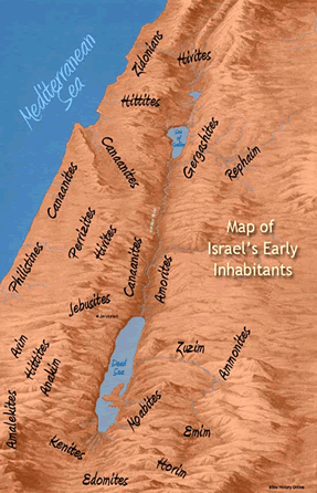 Bible map of the early inhabitants of the land of Israel, 1500-1000 B.C. map courtesy of BibleHistory.com Return to today's Bible study: April 15, 16Home Chronological Bible Studies, main page Return to Maps menu